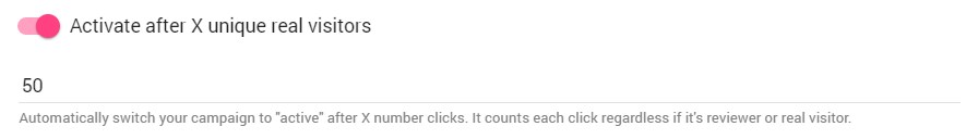 When you are using "Activate after X unique real visitors" in conjugation with "Block All after X minutes of inactivity", your campaign will reactivate after the specified number of clicks, regardless of their type (real visitor or reviewer, bot, etc).
