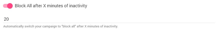 Switches the campaign to "Block all" after X minutes of inactivity (no clicks received).