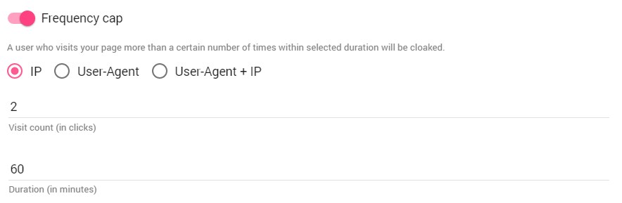 Cloaks any user who visits your page more than a certain number of times within selected duration.